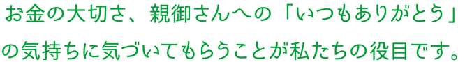 お金のお勉強を通して、普段当たり前にあるお金がどれだけ大切なものか、理解した上で親御さんにありがとうと伝えてくれたらいいな、と思っています。